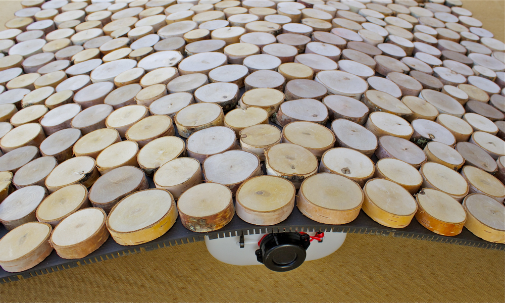 Butiksdisk förvandlas till en dekorativ vedtrave